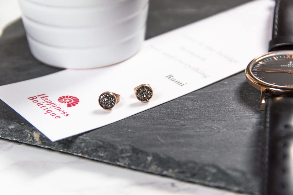 Wer meinen Blog schon länger verfolgt, der weiß ob meiner zwei großen Leidenschaften: Parfums und Schmuck. Bei einem tollen Duftwässerchen kann ich nicht widerstehen – habe ich mich einmal in einen Flakon verliebt, muss ich ihn besitzen. Bei Schmuck ist das ganz ähnlich: Wenn ich ein Teil entdecke, das gut zu mir passt, möchte ich es am liebsten sofort anlegen und nicht mehr loslassen. Zwei neue solcher Teile sind kürzlich bei mir eingezogen, nämlich ein Armband und Ohrstecker von Happiness Boutique. Ich möchte euch beide heute genauer zeigen und habe gleichzeitig einen Gutscheincode für euch!