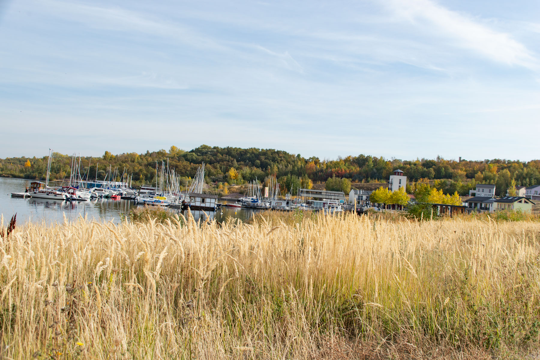 Mitte Oktober ist die Saison in der Marina Mücheln eigentlich schon vorbei, ein Teil der Gastronomie war geschlossen, der Bootsverleih hatte aber glücklicherweise noch geöffnet, sodass wir eine Runde auf dem See drehen konnten. Auch an direkt umliegenden Supermärkten mangelte es nicht, wir konnten uns jeden Tag mit frischen Lebensmitteln eindecken.